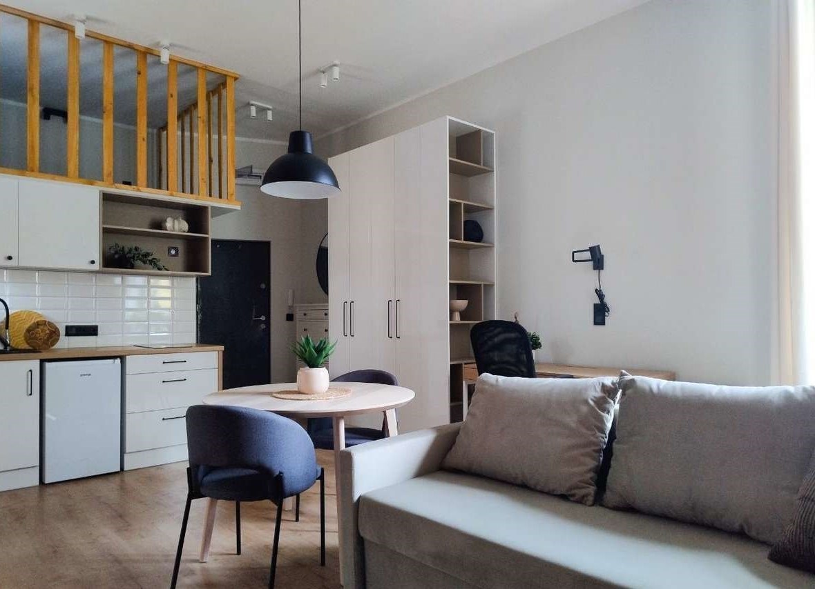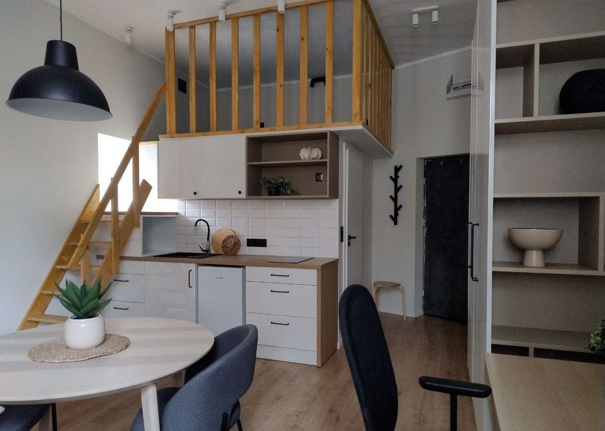 Układ: 1 pokój, aneks kuchenny, łazienka z prysznicem