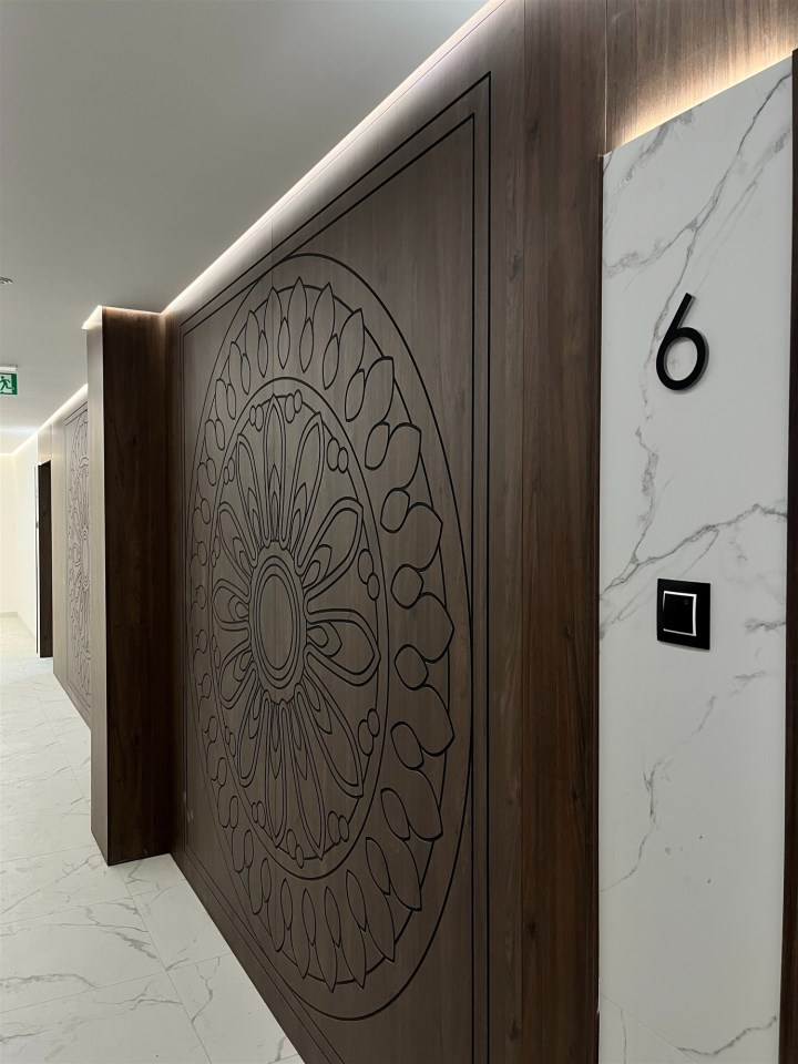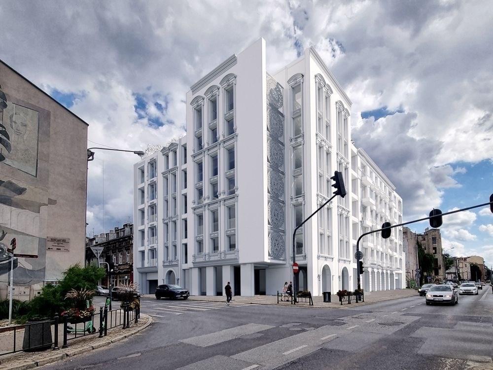 Projekt wyróżnia się charakterystyczną bryłą –elegancką, białą elewacją, subtelnymi zdobieniami oraz wysublimowanym układem przestrzennym wnętrz. Szczególną uwagę przyciągają okrągłe detale architektoniczne umieszczone w części narożnej budynku – swoją formą przypominają koronkę, co nadaje całej konstrukcji lekkości, finezji i niepowtarzalnego charakteru. Inspiracją był klasyczny styl łódzkich kamienic, przełamany współczesną estetyką.
